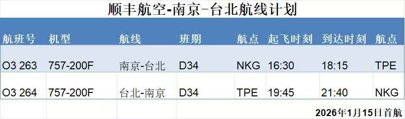 1月15日,运载26.5吨货物的顺丰航空O3263航班从南京禄口机场飞往台北,南京—台北货运航线顺利开通。