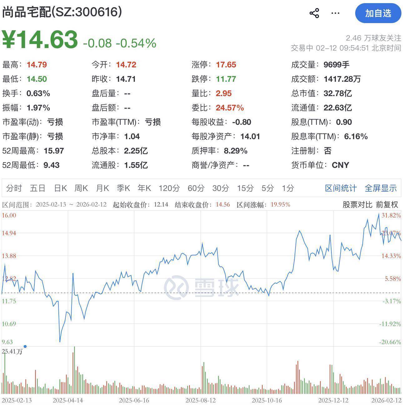 按照尚品宅配当前股价14.63元/股粗略计算,彭劲雄、付建平此次减持均或将套现约2926万元,两人合计或将套现约5852万元。
