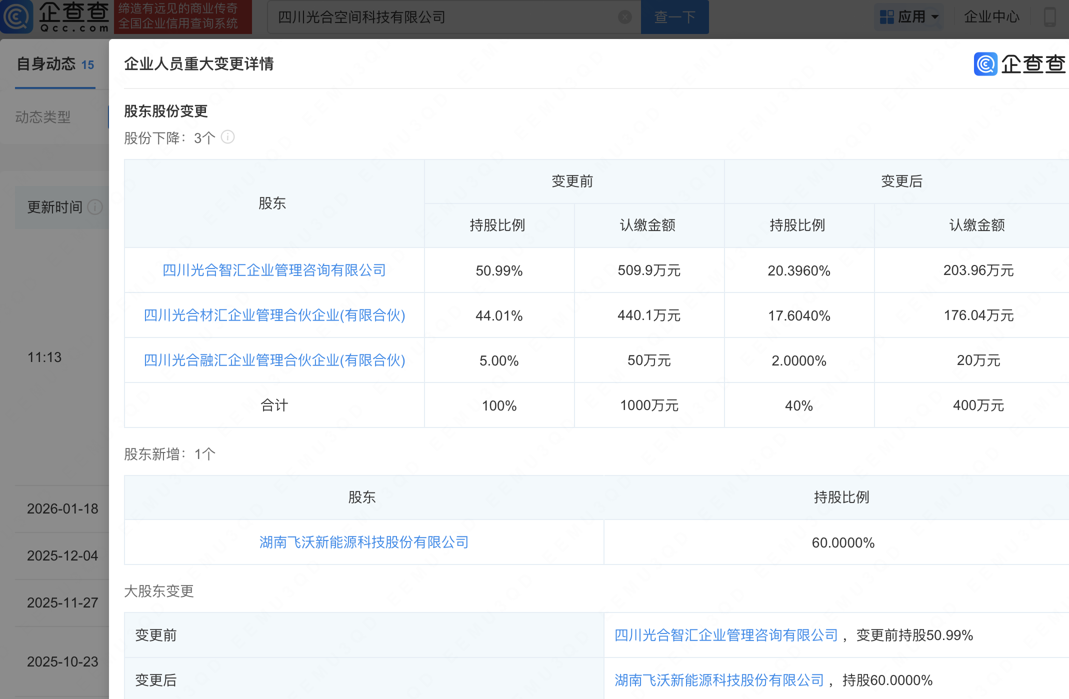 近日,四川光合空间科技有限公司发生工商变更,新增飞沃科技(301232)为大股东,持股60%。企查查信息显示,该公司成立于2020年,法定代表人为刘杰,经营范围包含:火箭发射设备研发和制造;火箭发动机研发与制造;民用航空器(发动机、螺旋桨)生产等。